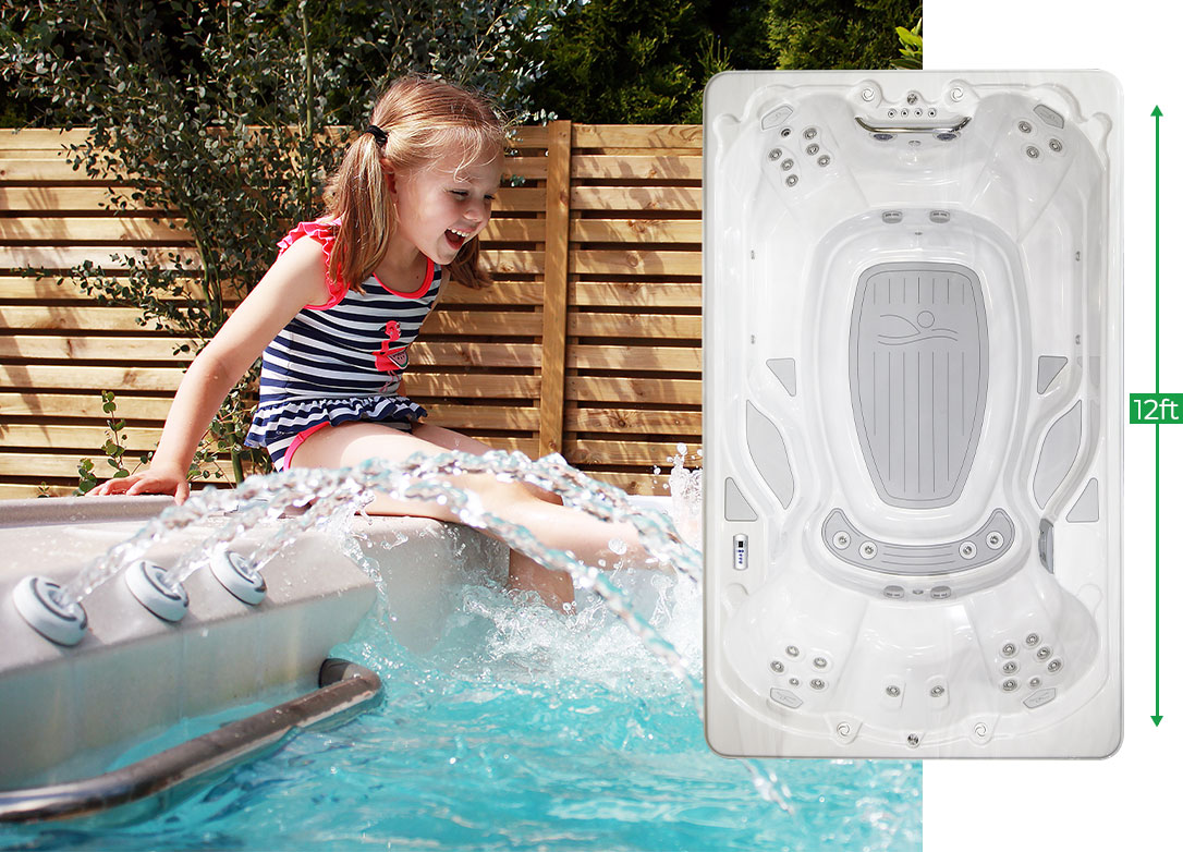 The SwimFun is the perfect mini pool for you and your family! Ideal for both fun and exercise, the 12 ft. SwimFun helps you stay active and fit while providing entertainment for the entire family. This model features two swim jets that enhance the natural resistance of water, ensuring an effective workout. Enjoy built-in hydrotherapy and relaxation with contoured seating and massaging jets. The SwimFun is the ultimate life of the party, offering plenty of enjoyment for everyone.
